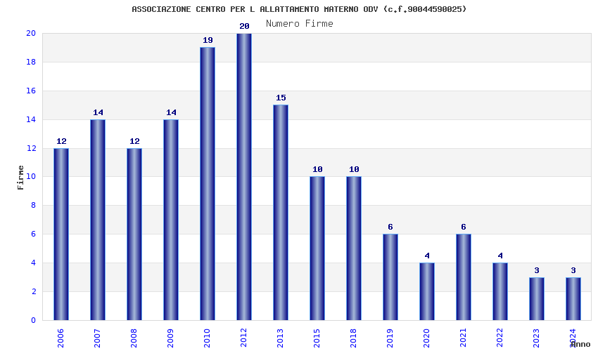 | Anno | Firme | Importi | Media | Naz. | Reg. | Prov. | Comu. |