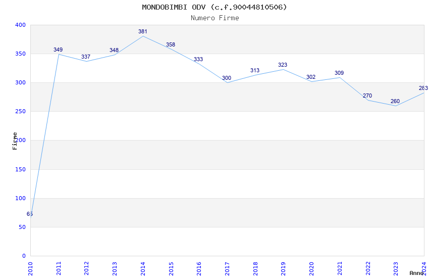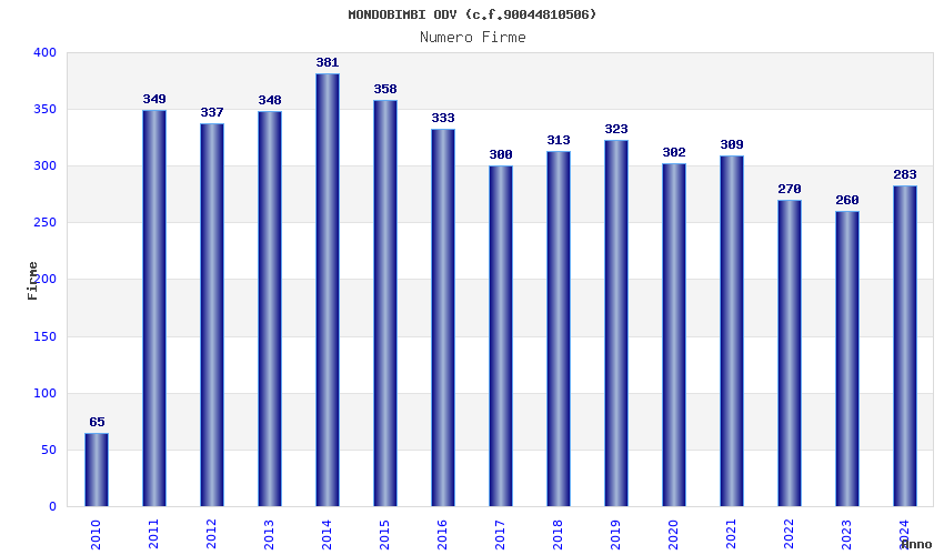 | Anno | Firme | Importi | Media | Naz. | Reg. | Prov. | Comu. |