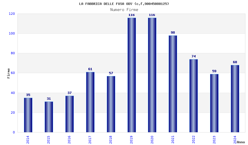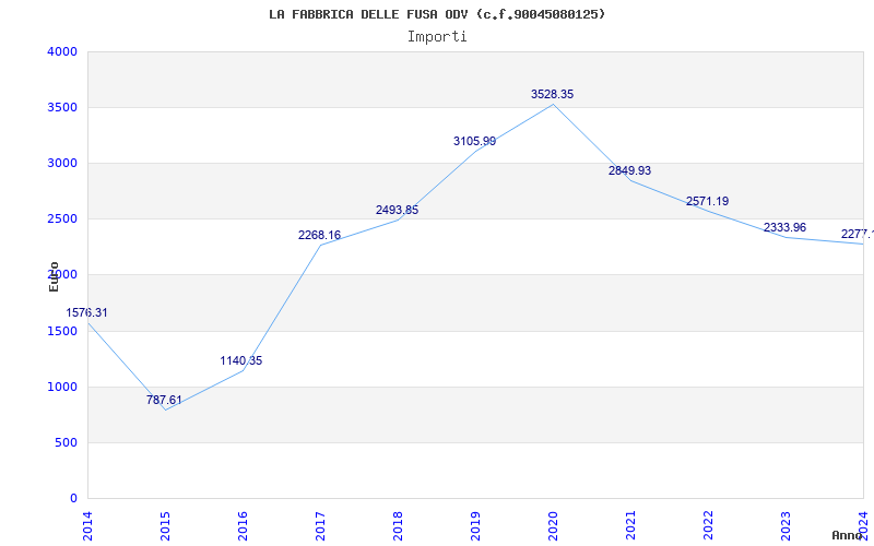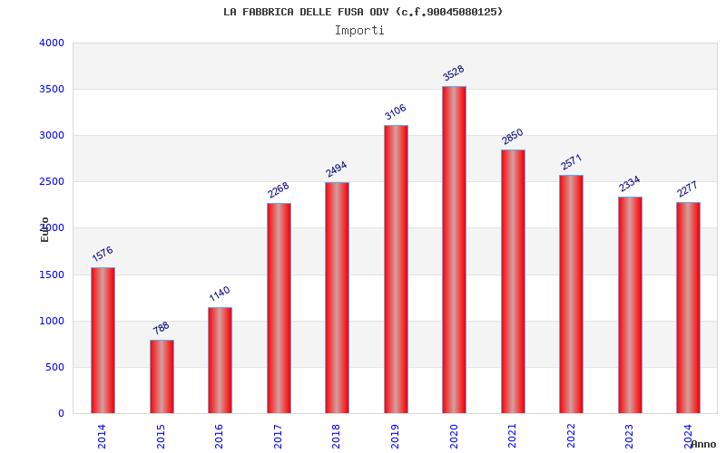 | Anno | Firme | Importi | Media | Naz. | Reg. | Prov. | Comu. |