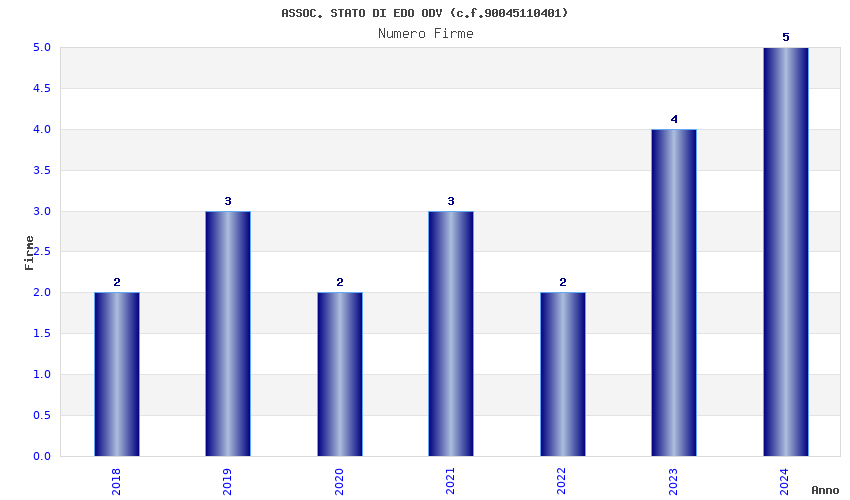 | Anno | Firme | Importi | Media | Naz. | Reg. | Prov. | Comu. |