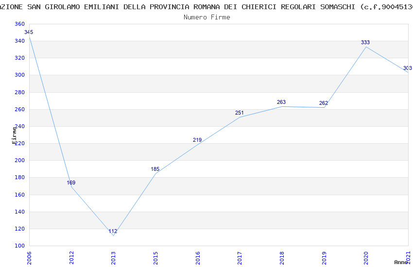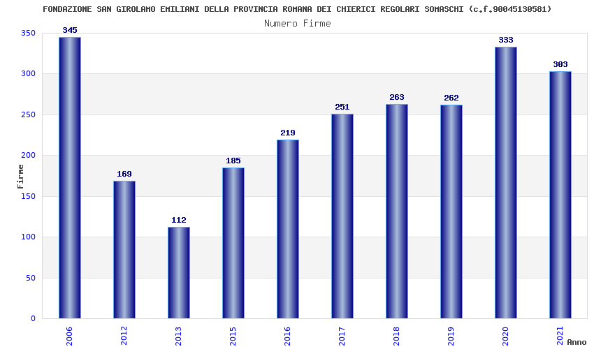 | Anno | Firme | Importi | Media | Naz. | Reg. | Prov. | Comu. |