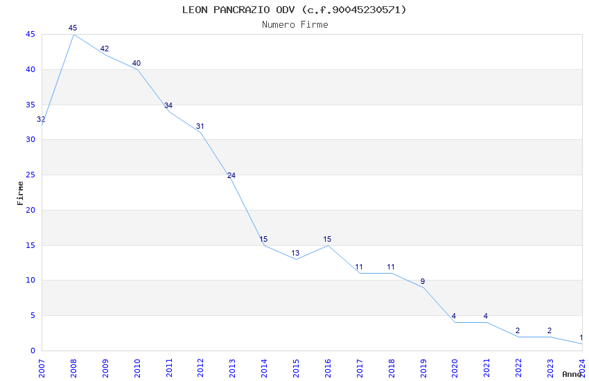 | 2008 | 45 | 2.615,58 | 58,12 | 12.872 | 1.385 | 17 | 1 |