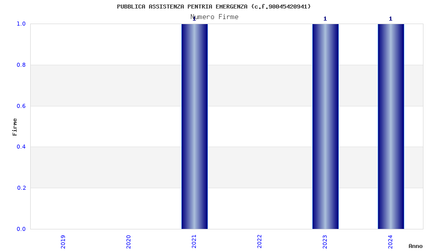 | Anno | Firme | Importi | Media | Naz. | Reg. | Prov. | Comu. |