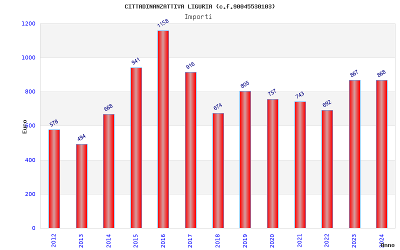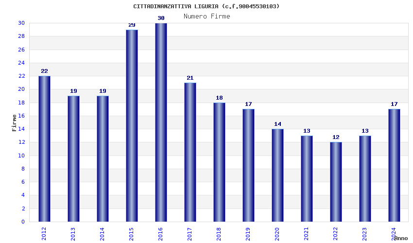 | Anno | Firme | Importi | Media | Naz. | Reg. | Prov. | Comu. |