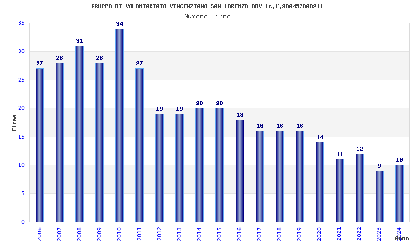 | Anno | Firme | Importi | Media | Naz. | Reg. | Prov. | Comu. |