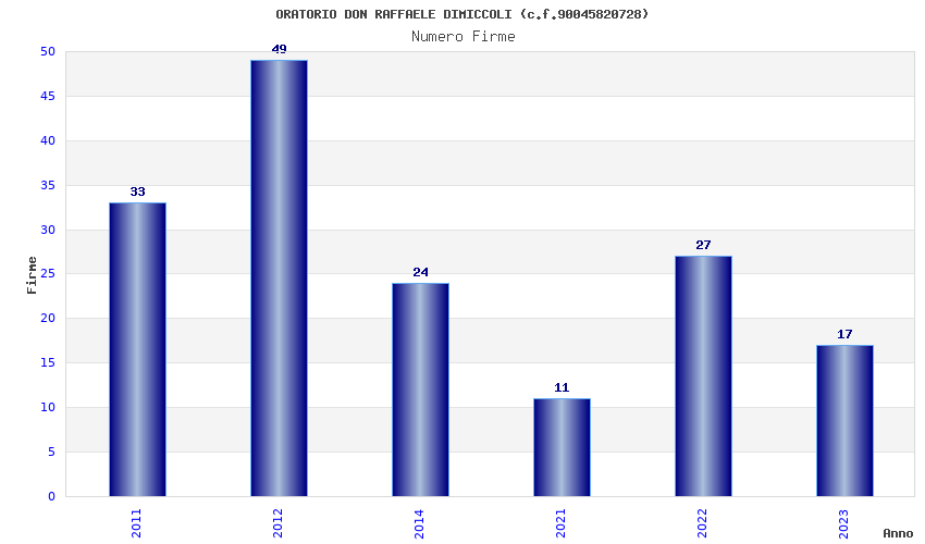 | Anno | Firme | Importi | Media | Naz. | Reg. | Prov. | Comu. |