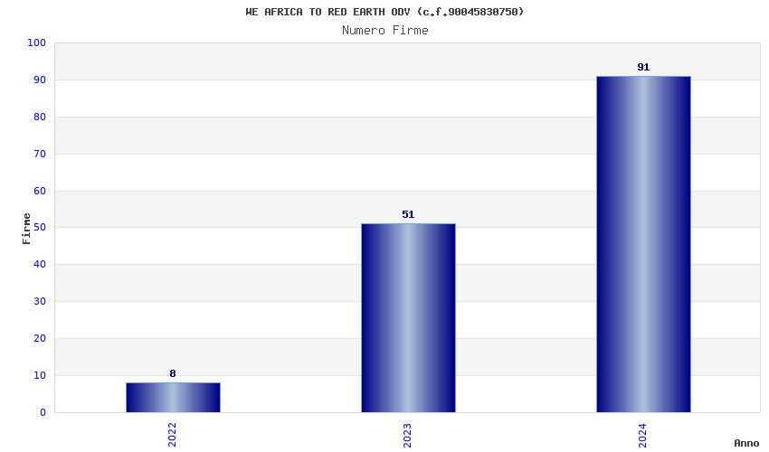 | Anno | Firme | Importi | Media | Naz. | Reg. | Prov. | Comu. |