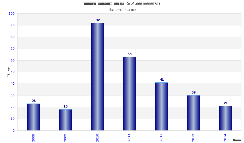 | Anno | Firme | Importi | Media | Naz. | Reg. | Prov. | Comu. |