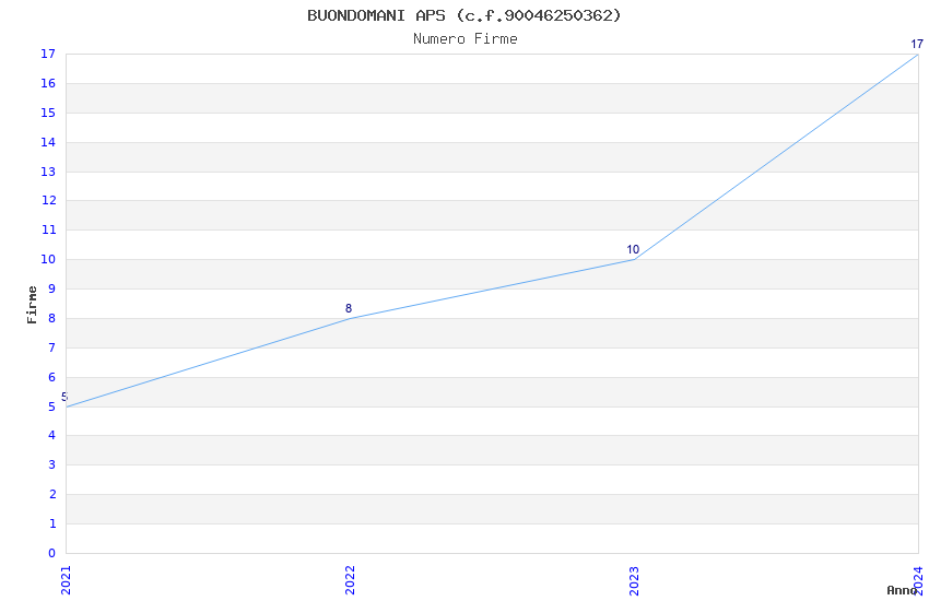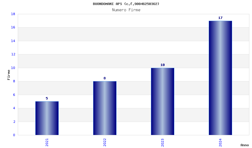 | Anno | Firme | Importi | Media | Naz. | Reg. | Prov. | Comu. |