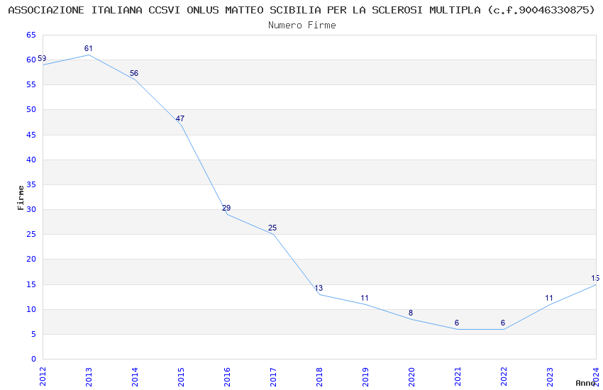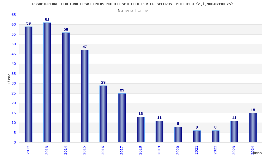 | Anno | Firme | Importi | Media | Naz. | Reg. | Prov. | Comu. |