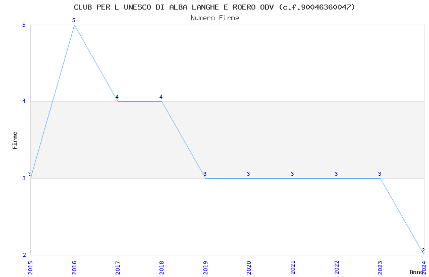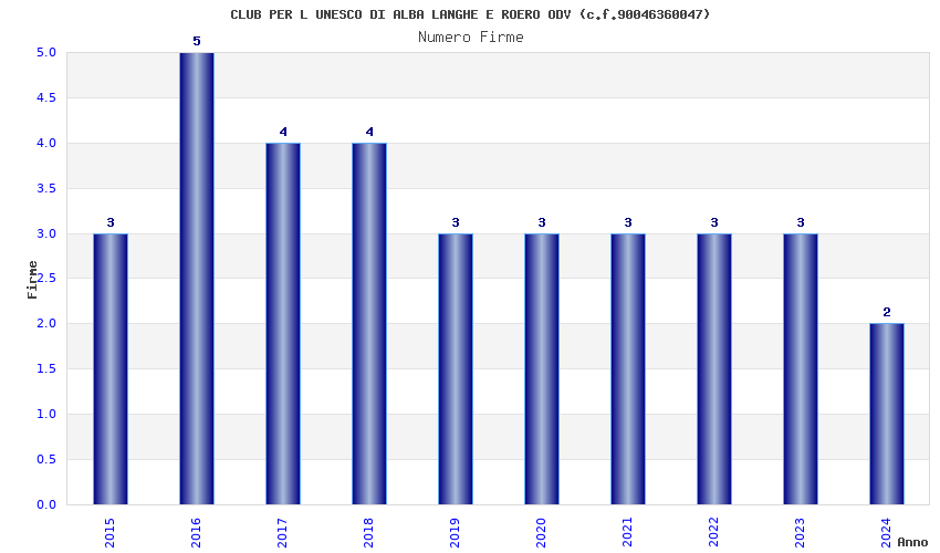 | Anno | Firme | Importi | Media | Naz. | Reg. | Prov. | Comu. |