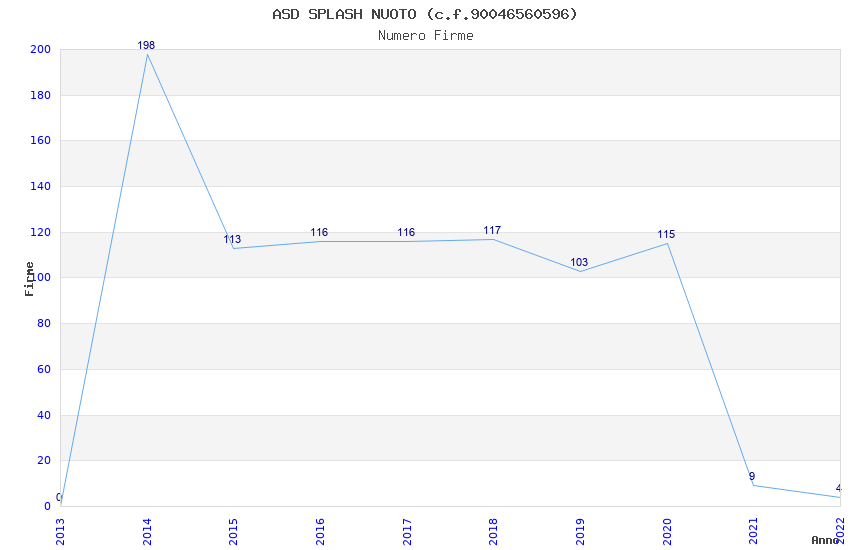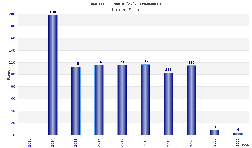 | Anno | Firme | Importi | Media | Naz. | Reg. | Prov. | Comu. |