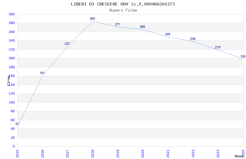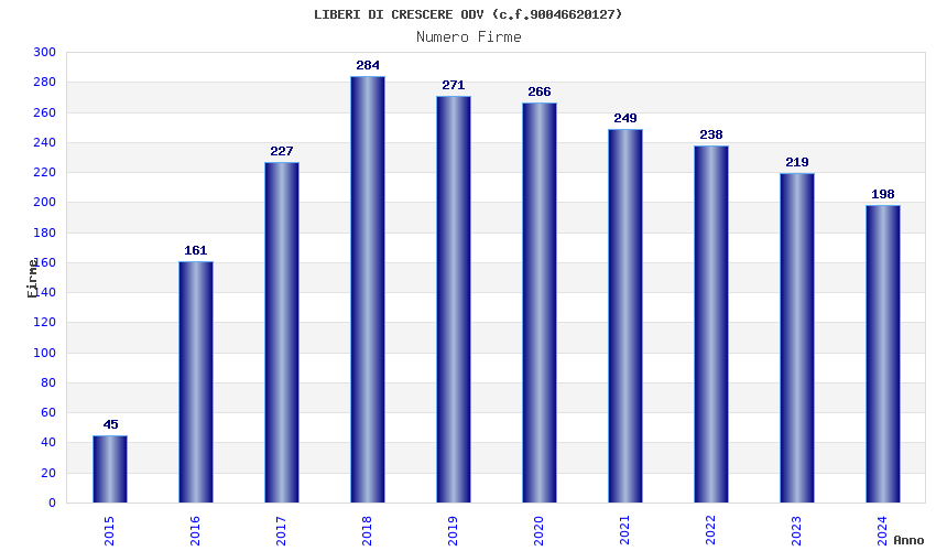 | Anno | Firme | Importi | Media | Naz. | Reg. | Prov. | Comu. |