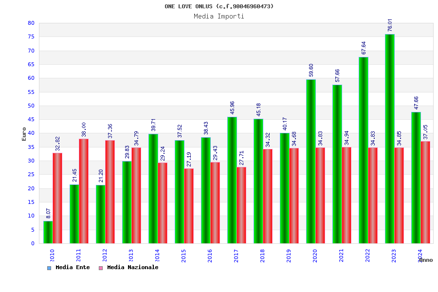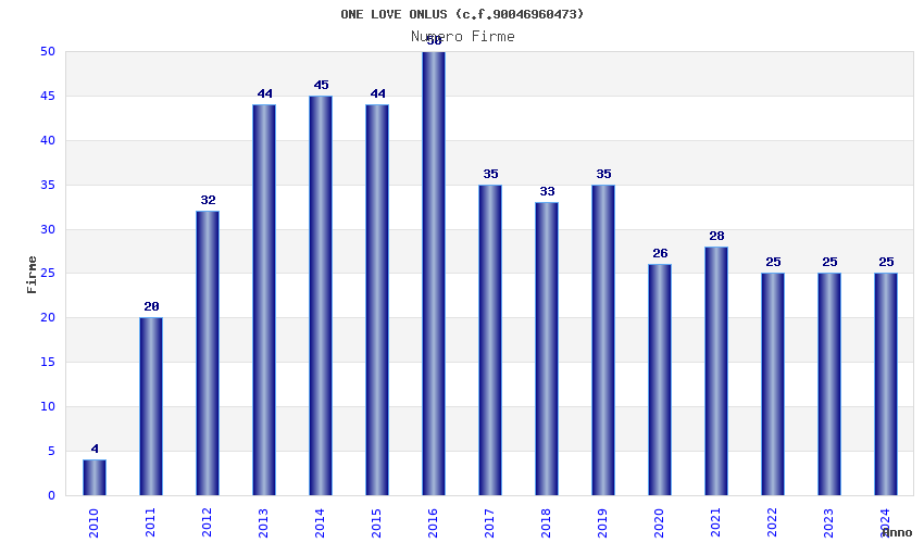 | Anno | Firme | Importi | Media | Naz. | Reg. | Prov. | Comu. |