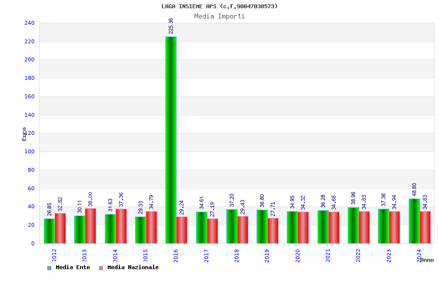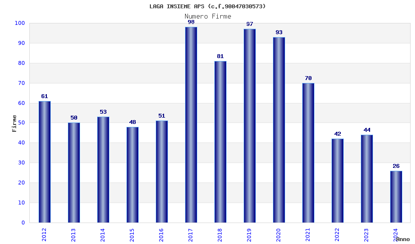 | Anno | Firme | Importi | Media | Naz. | Reg. | Prov. | Comu. |