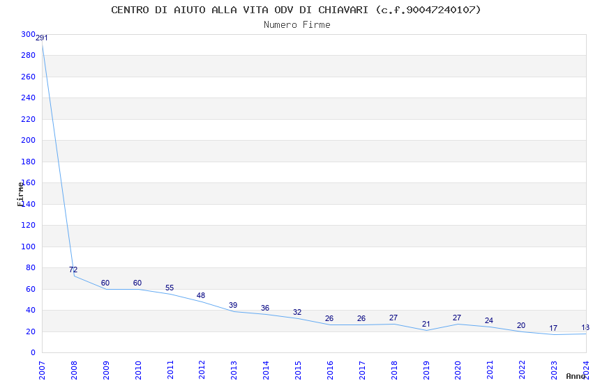| Anno | Firme | Importi | Media | Naz. | Reg. | Prov. | Comu. |