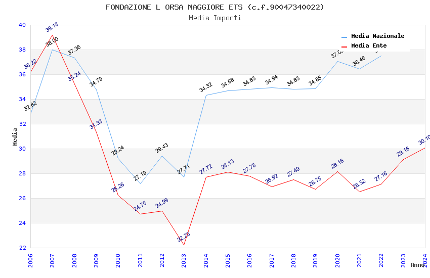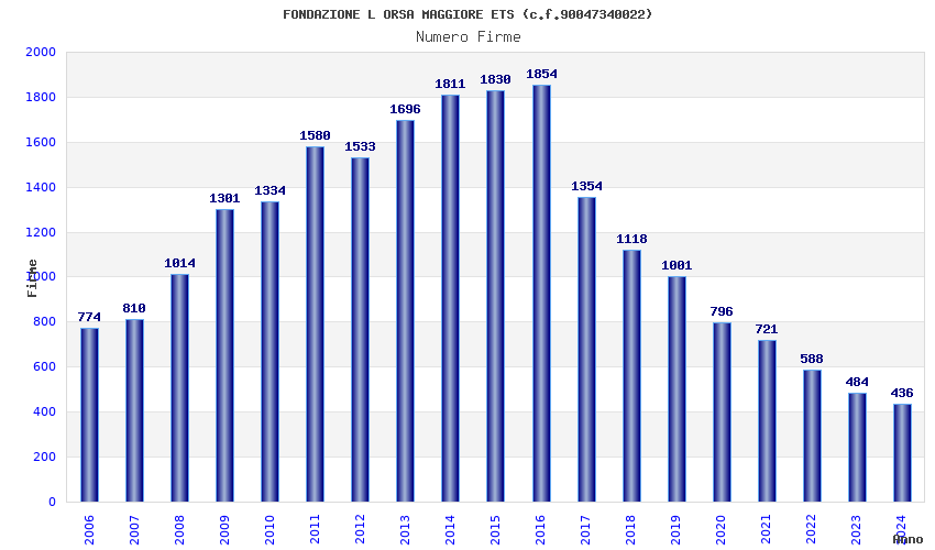 | Anno | Firme | Importi | Media | Naz. | Reg. | Prov. | Comu. |