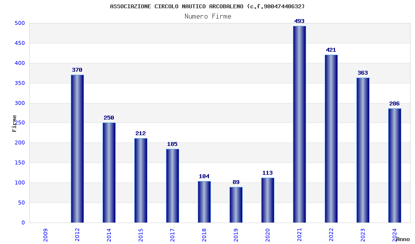 | Anno | Firme | Importi | Media | Naz. | Reg. | Prov. | Comu. |