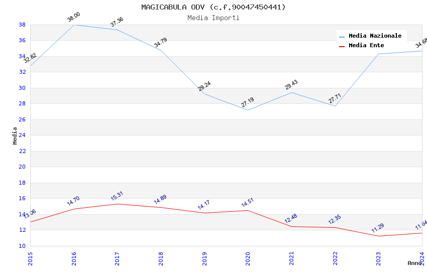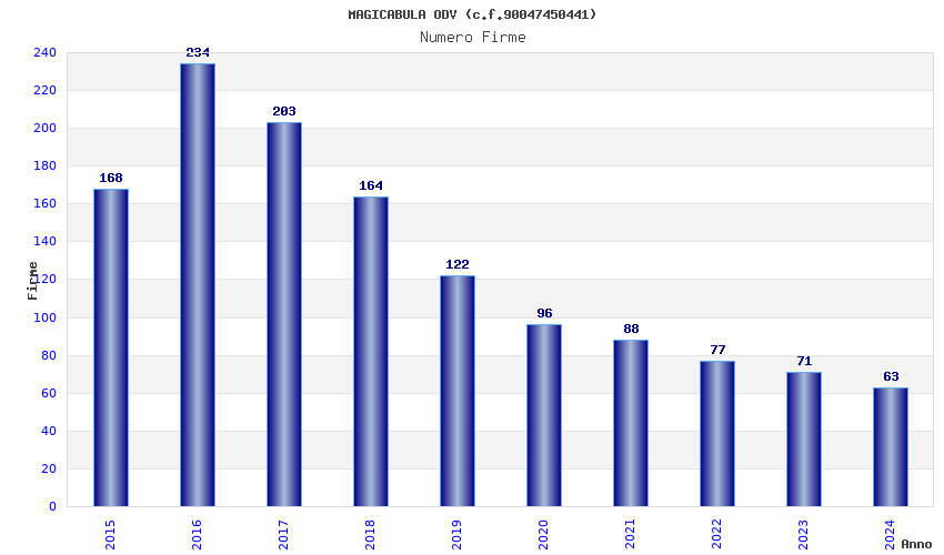 | Anno | Firme | Importi | Media | Naz. | Reg. | Prov. | Comu. |