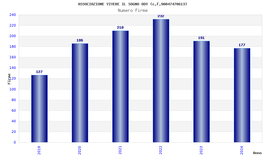 | Anno | Firme | Importi | Media | Naz. | Reg. | Prov. | Comu. |
