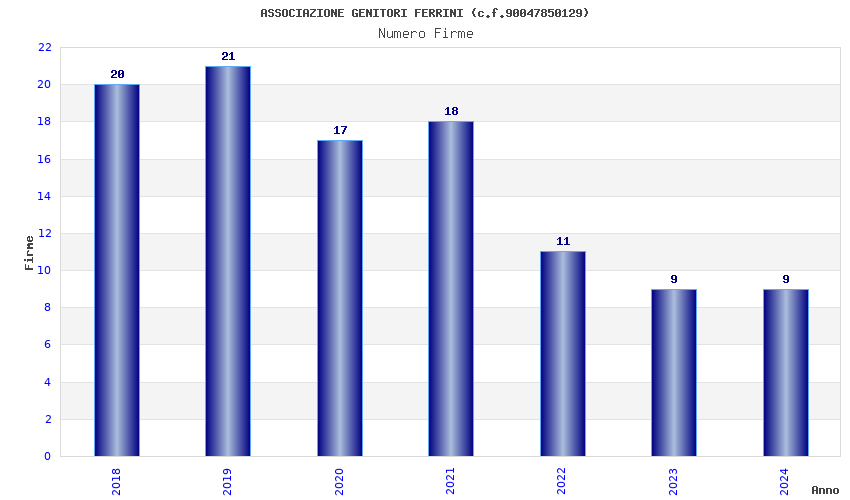 | Anno | Firme | Importi | Media | Naz. | Reg. | Prov. | Comu. |
