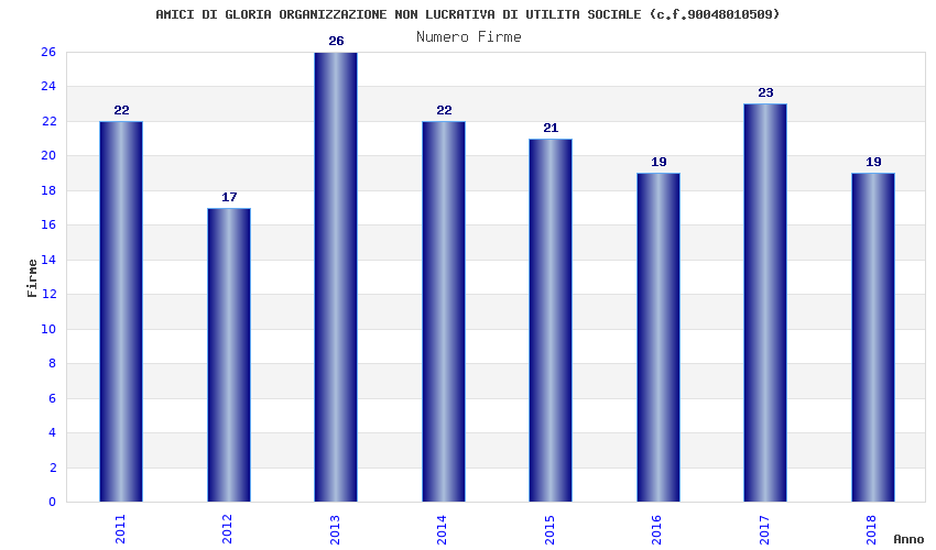 | Anno | Firme | Importi | Media | Naz. | Reg. | Prov. | Comu. |