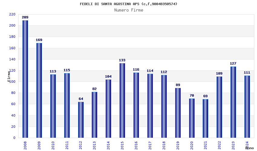 | Anno | Firme | Importi | Media | Naz. | Reg. | Prov. | Comu. |