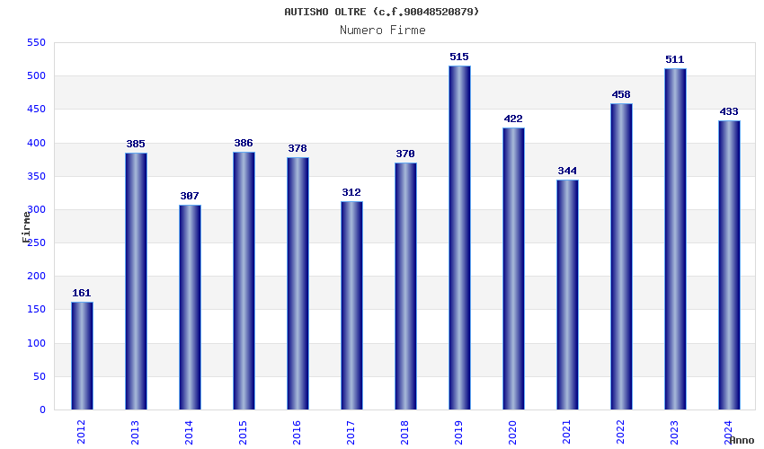 | Anno | Firme | Importi | Media | Naz. | Reg. | Prov. | Comu. |