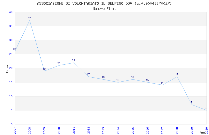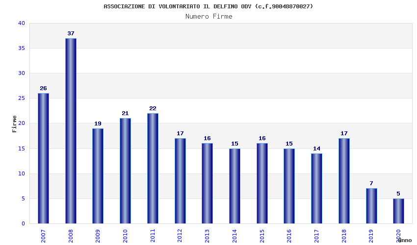 | Anno | Firme | Importi | Media | Naz. | Reg. | Prov. | Comu. |
