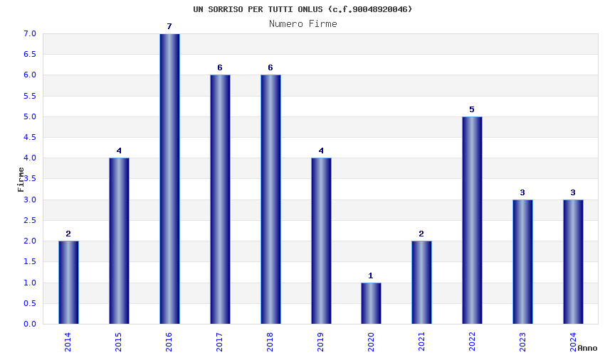 | Anno | Firme | Importi | Media | Naz. | Reg. | Prov. | Comu. |