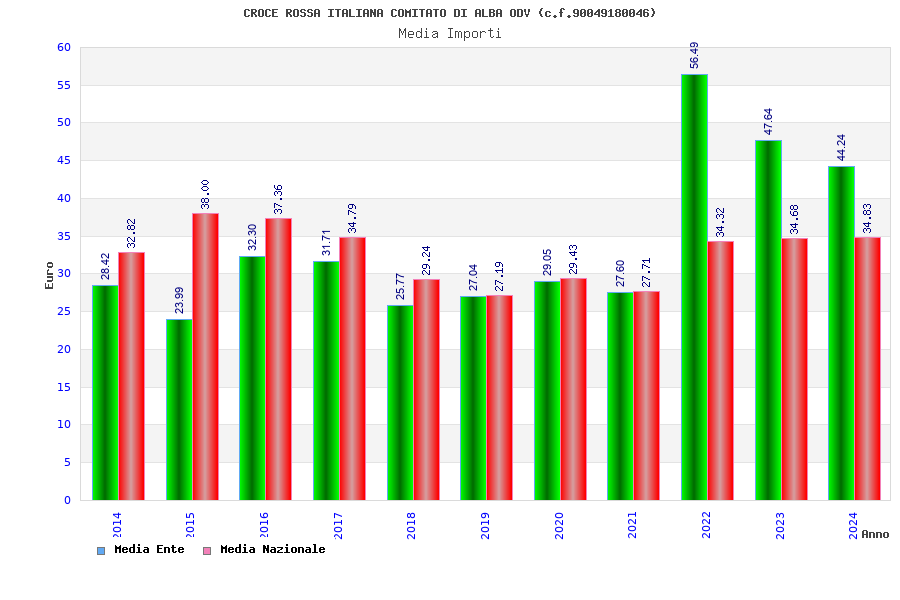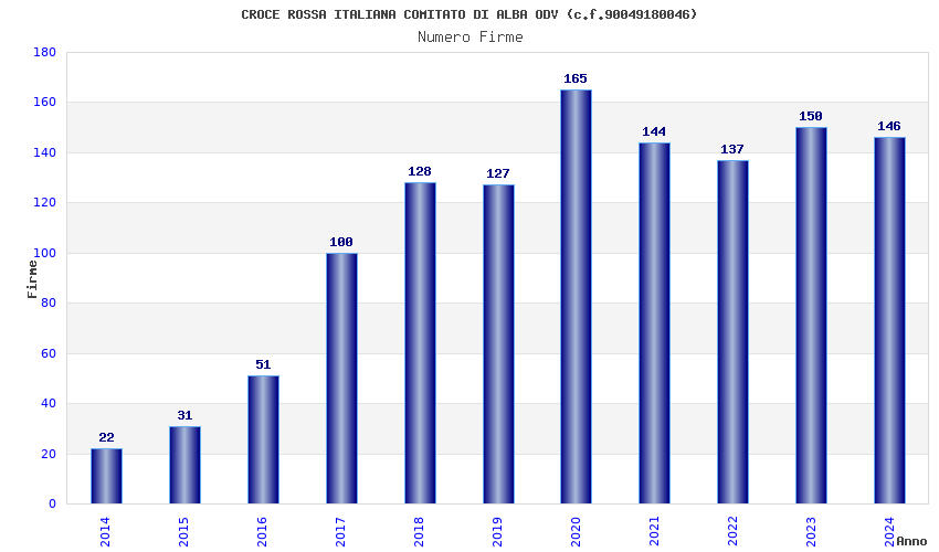 | Anno | Firme | Importi | Media | Naz. | Reg. | Prov. | Comu. |