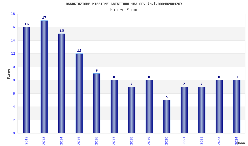 | Anno | Firme | Importi | Media | Naz. | Reg. | Prov. | Comu. |