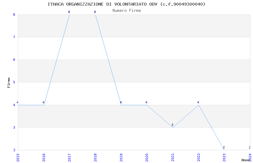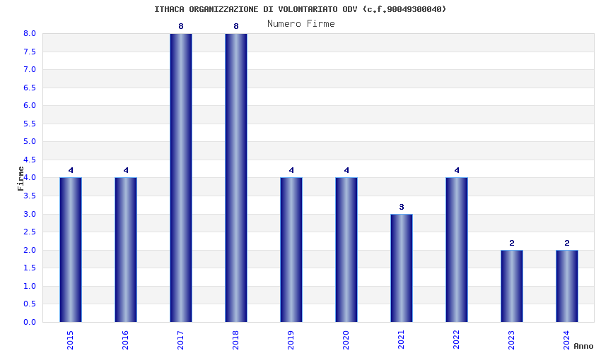 | Anno | Firme | Importi | Media | Naz. | Reg. | Prov. | Comu. |