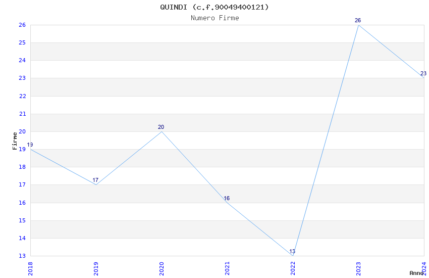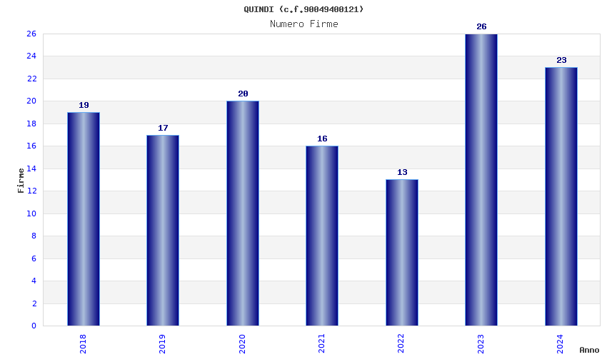 | Anno | Firme | Importi | Media | Naz. | Reg. | Prov. | Comu. |