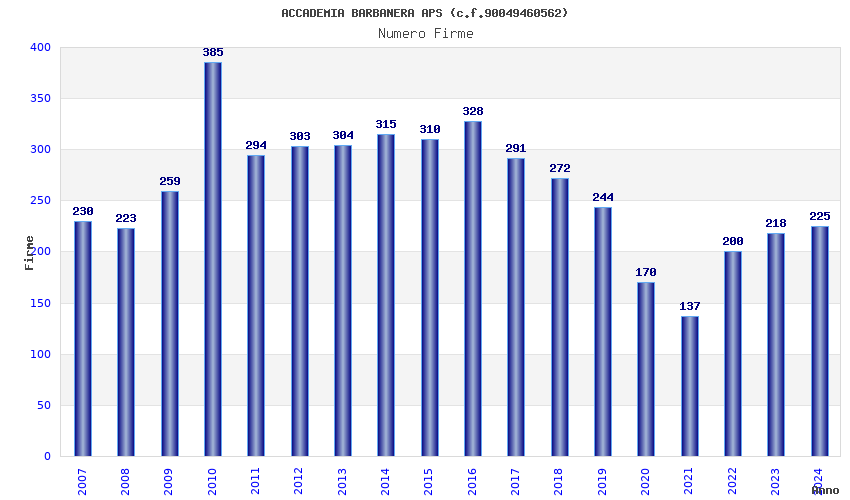 Anno Firme Importi Media Naz. Reg. Prov. Comu.