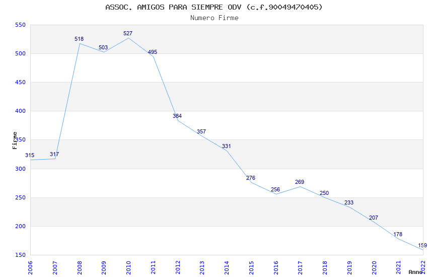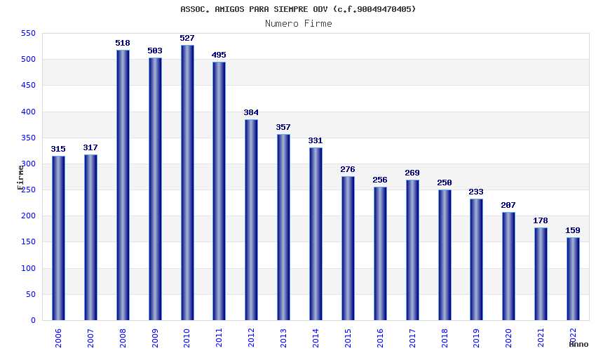 | Anno | Firme | Importi | Media | Naz. | Reg. | Prov. | Comu. |