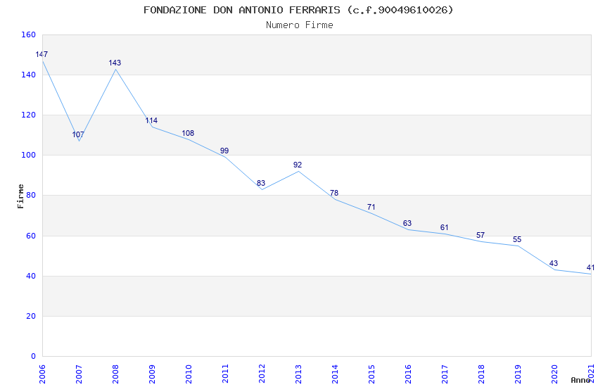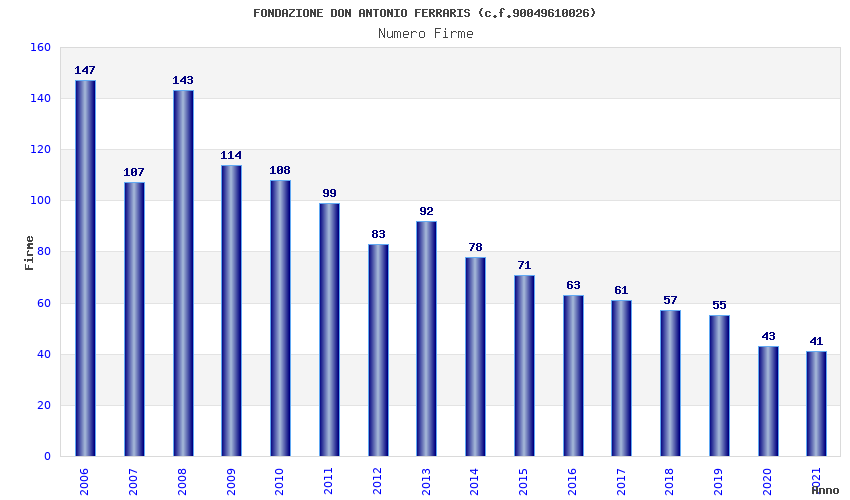 | Anno | Firme | Importi | Media | Naz. | Reg. | Prov. | Comu. |