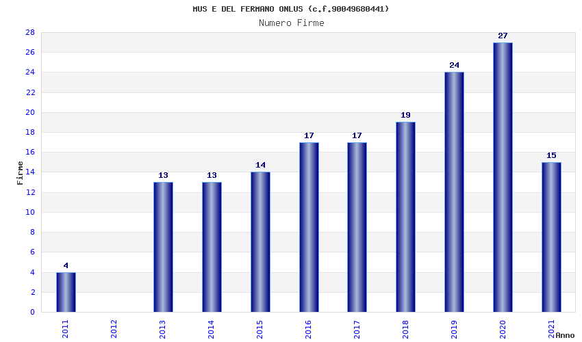 | Anno | Firme | Importi | Media | Naz. | Reg. | Prov. | Comu. |