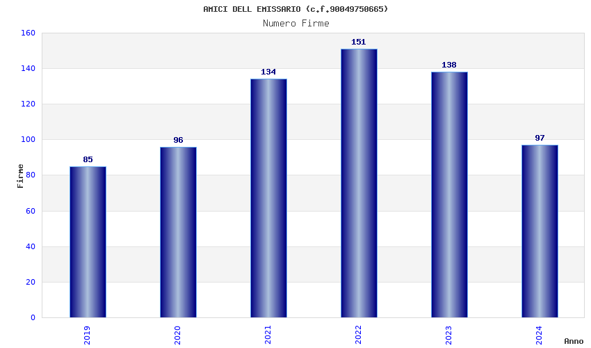 | Anno | Firme | Importi | Media | Naz. | Reg. | Prov. | Comu. |