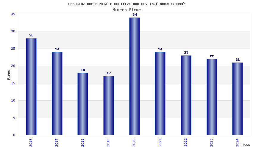 | Anno | Firme | Importi | Media | Naz. | Reg. | Prov. | Comu. |