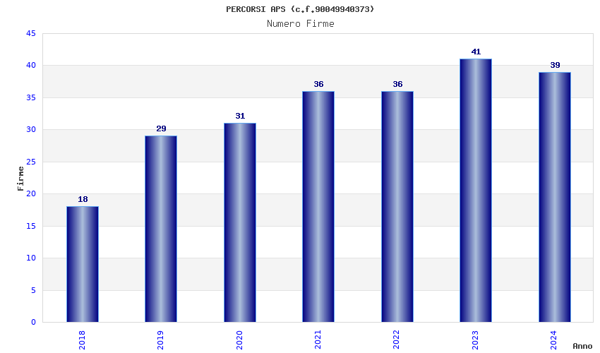 | Anno | Firme | Importi | Media | Naz. | Reg. | Prov. | Comu. |