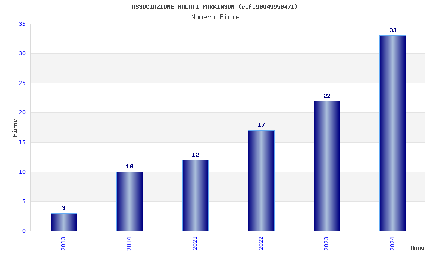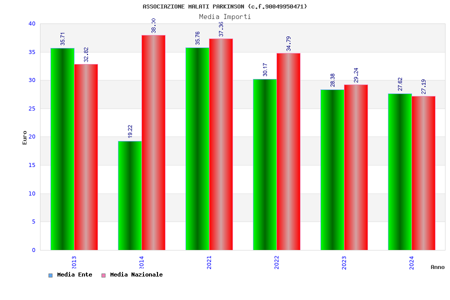 | Anno | Firme | Importi | Media | Naz. | Reg. | Prov. | Comu. |