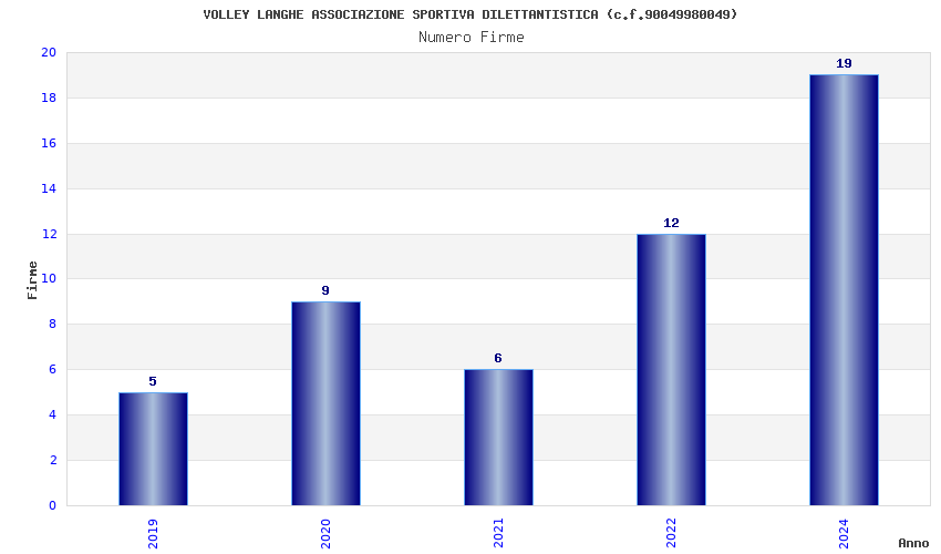 | Anno | Firme | Importi | Media | Naz. | Reg. | Prov. | Comu. |