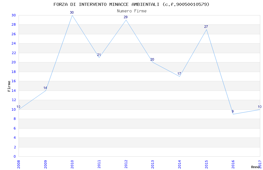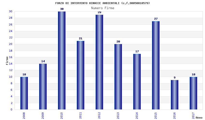| Anno | Firme | Importi | Media | Naz. | Reg. | Prov. | Comu. |