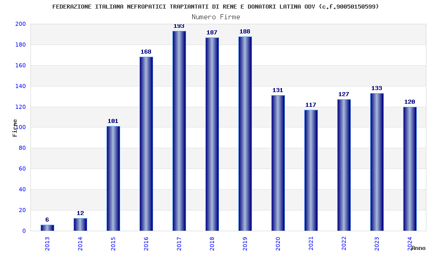 | Anno | Firme | Importi | Media | Naz. | Reg. | Prov. | Comu. |