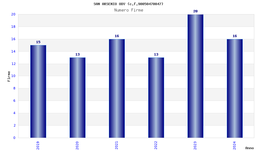 | Anno | Firme | Importi | Media | Naz. | Reg. | Prov. | Comu. |