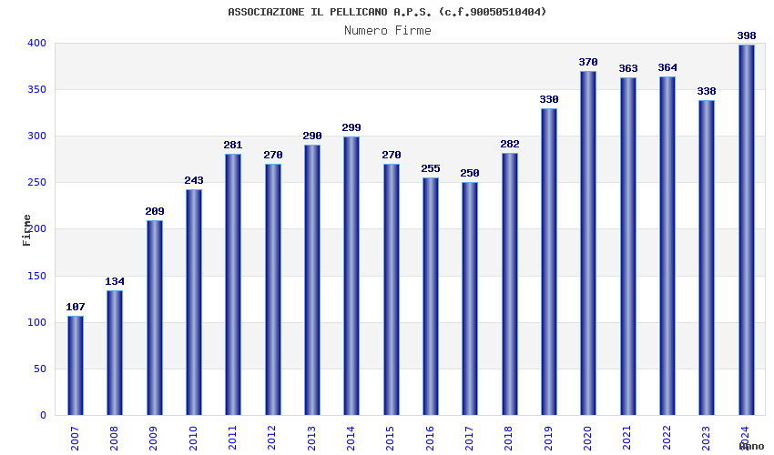 | Anno | Firme | Importi | Media | Naz. | Reg. | Prov. | Comu. |