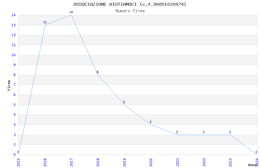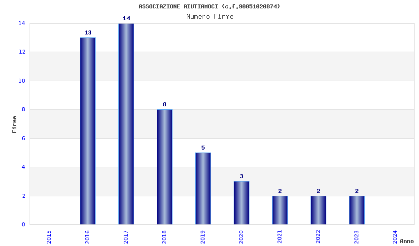 | Anno | Firme | Importi | Media | Naz. | Reg. | Prov. | Comu. |