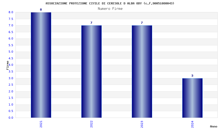 | Anno | Firme | Importi | Media | Naz. | Reg. | Prov. | Comu. |