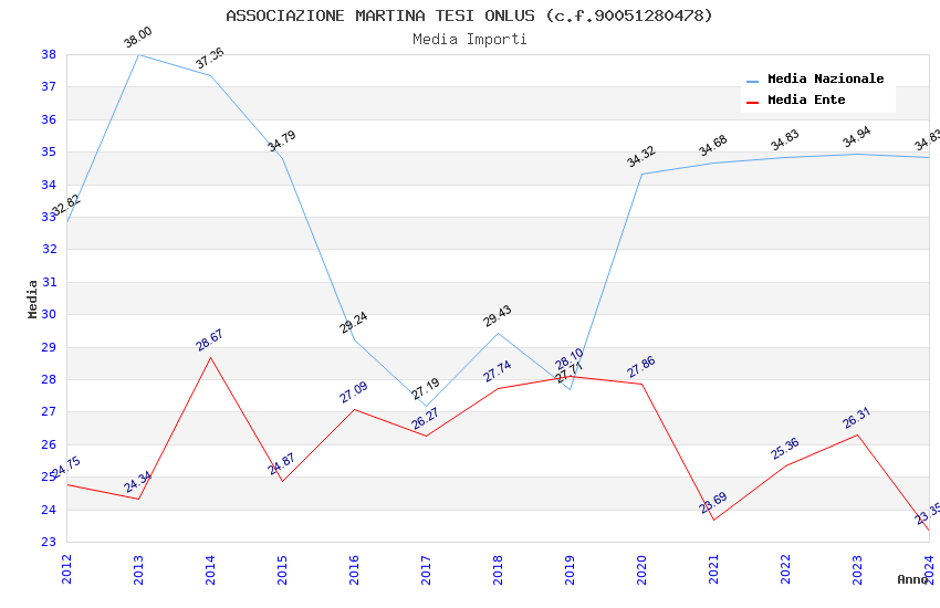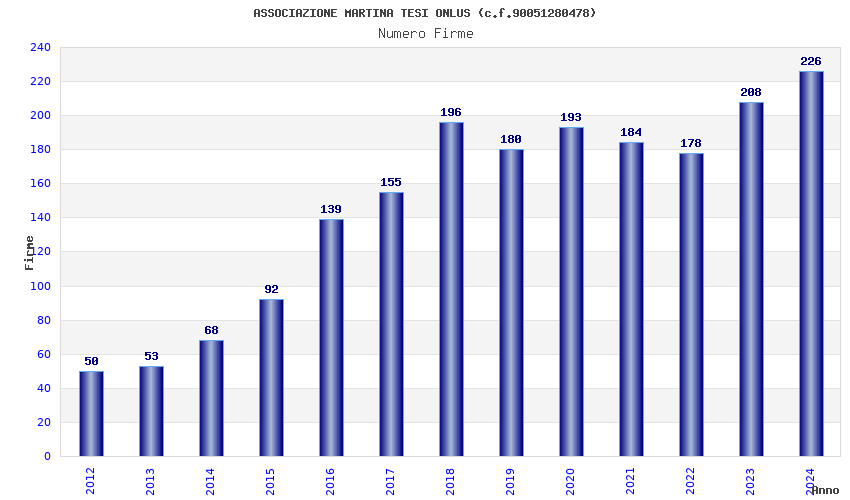 | Anno | Firme | Importi | Media | Naz. | Reg. | Prov. | Comu. |
